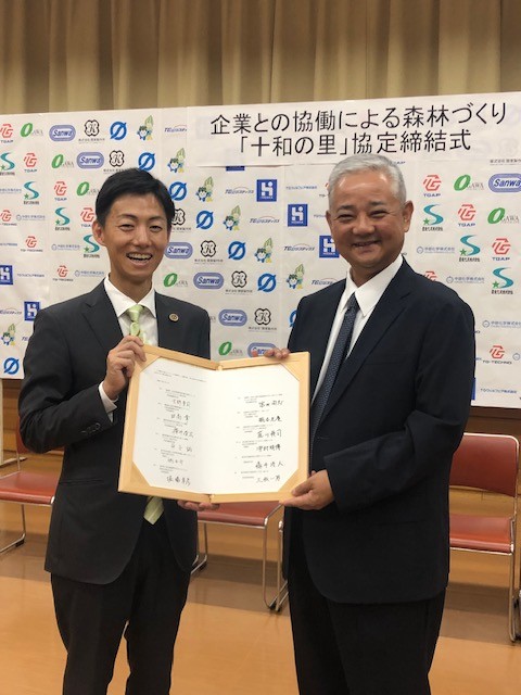 このたび、当社を含む10社と岐阜県美濃加茂市は、企業との協働による森林づくりを目的に「十和の里(とわのさと)」協定を締結いたしました。
